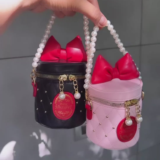 This cute Minnie Mouse Bucket Bag is so pretty , pearl handle / sling belt .. Shoulder / Crossbody bag for girls & women 💞